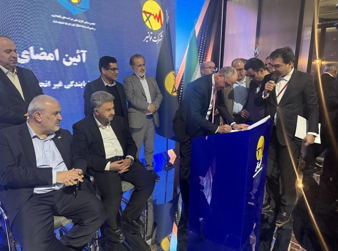 حضور مدیر عامل شرکت مادر تخصصی مدیریت تولید، انتقال و توزیع نیروی برق ایران (توانیر) آقای دکتر مصطفی رجبی مشهدی و وزیر نیرو آقای دکتر عباس علی آبادی و مدیر عامل محترم شرکت دانش بنیان توس فیوز آقای سیامک فارسیان در مراسم آیین امضا تفاهمنامه همکاری در بیست و پنجمین نمایشگاه بینالمللی برق تهران